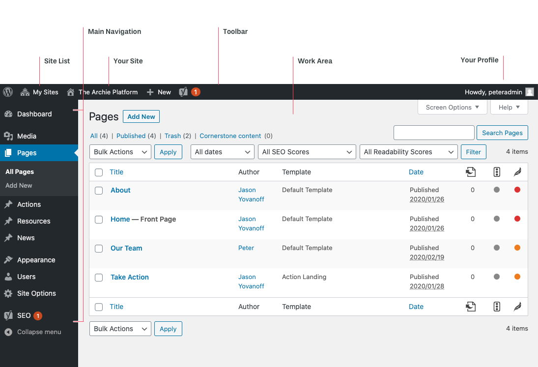 For anyone who has worked with WordPress, this should look familiar. Archie is built on top of the WordPress engine and shares many of the same features.